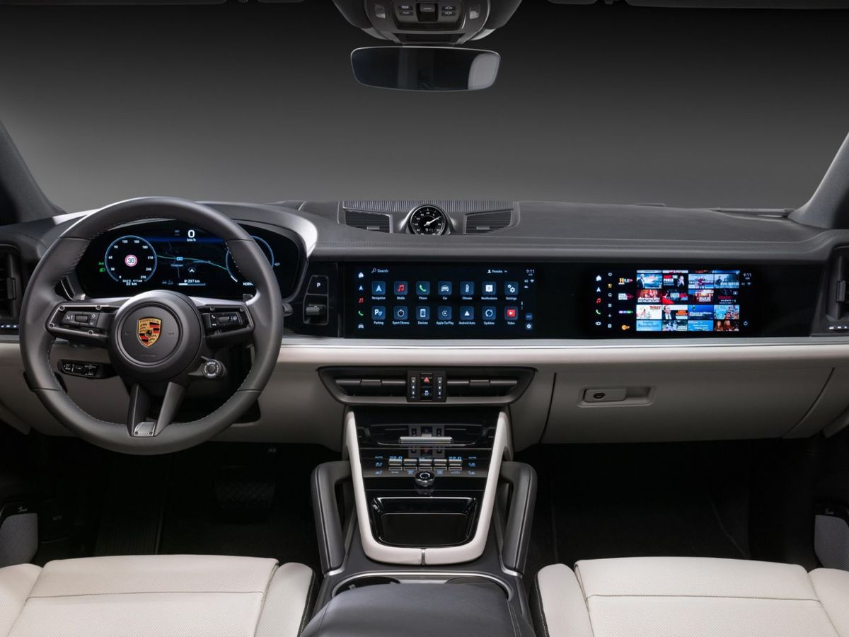 La cabina no se queda atrรกs, porque los clientes van a notar importantes cambios. Buena parte del tablero tiene un diseรฑo nuevo, con la palanca de cambios reposicionada y un nuevo cuadro de instrumentos digital de 12.6โ y una pantalla tรกctil de 12.3โ y aspecto curvo. Como toque final, el SUV alemรกn adopta el volante del actual Porsche 911.